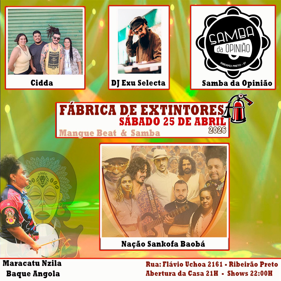 Am 25. April 2026 (Samstag) gibt es Manguebeat, Maracatu, Rock und Samba in der Fábrica de Extintores.